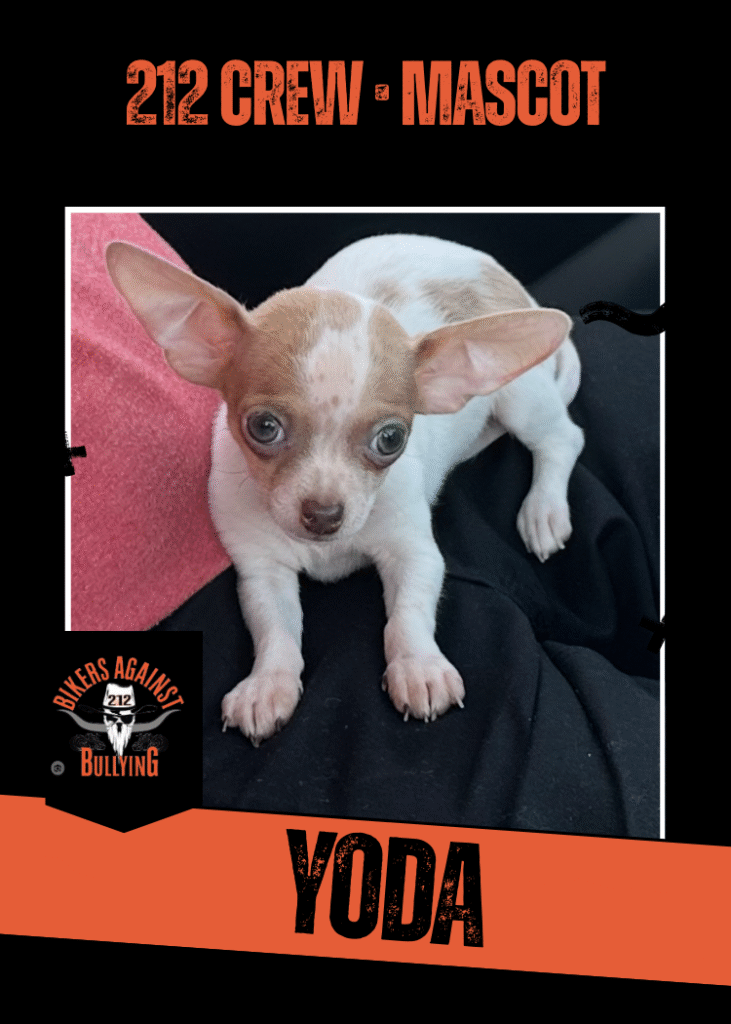 Don’t let the size fool you — Yoda is a four-pound legend with the heart of a lion and the attitude of a full-patch biker. As the official mascot who rides with all chapters, Yoda brings joy, comfort, and a hilarious burst of confidence everywhere he goes. Kids adore him, bikers protect him, and frankly… he runs the show.